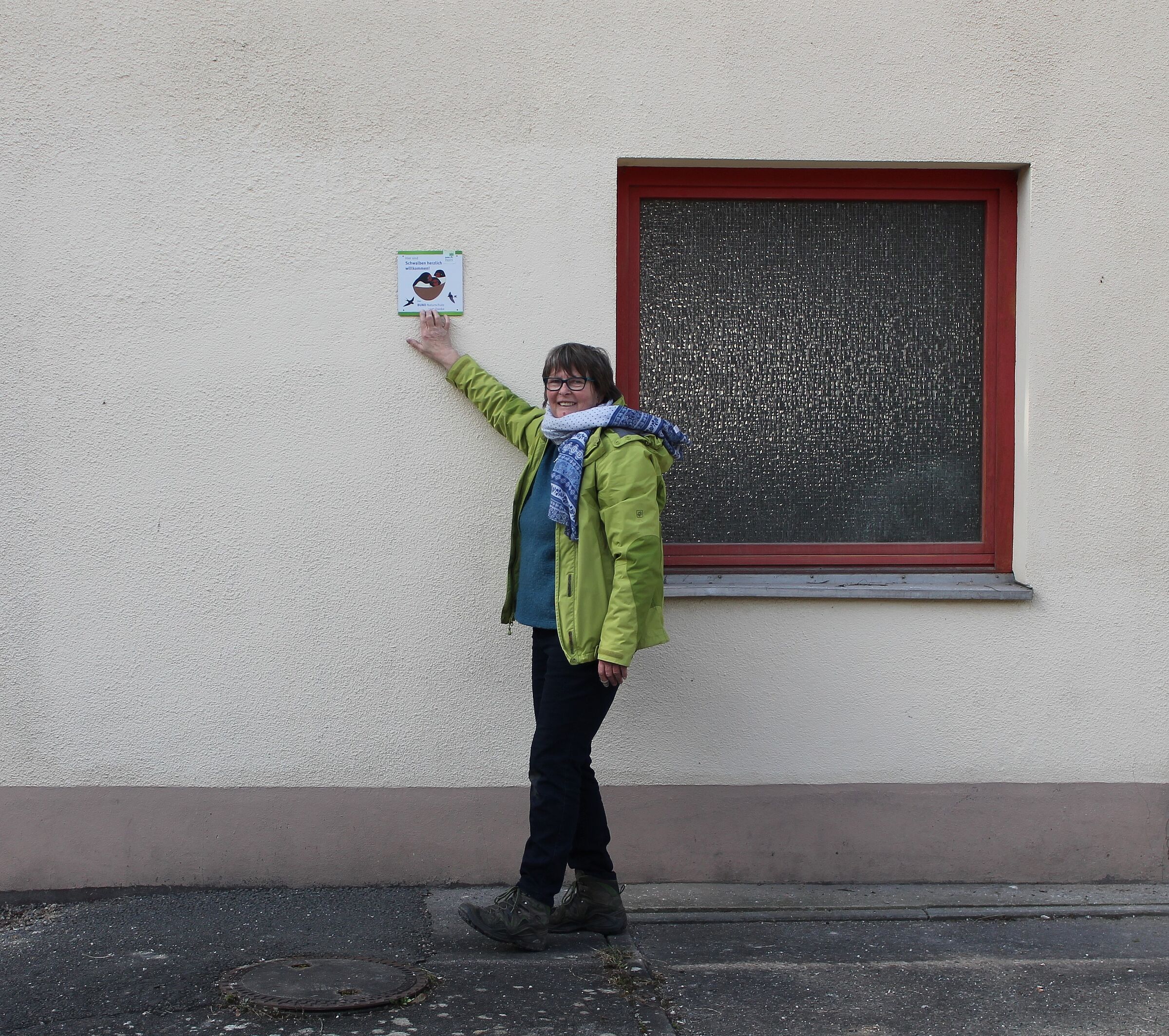 Es wurde die Plakette "Schwalben willkommen" an die Hauseigentümer vergeben und an der Wand angebracht.