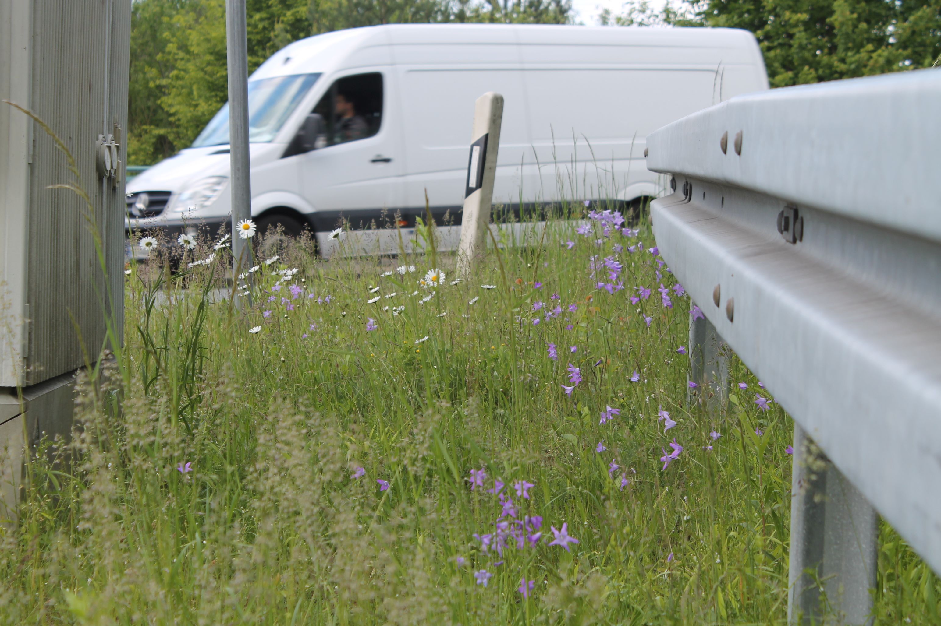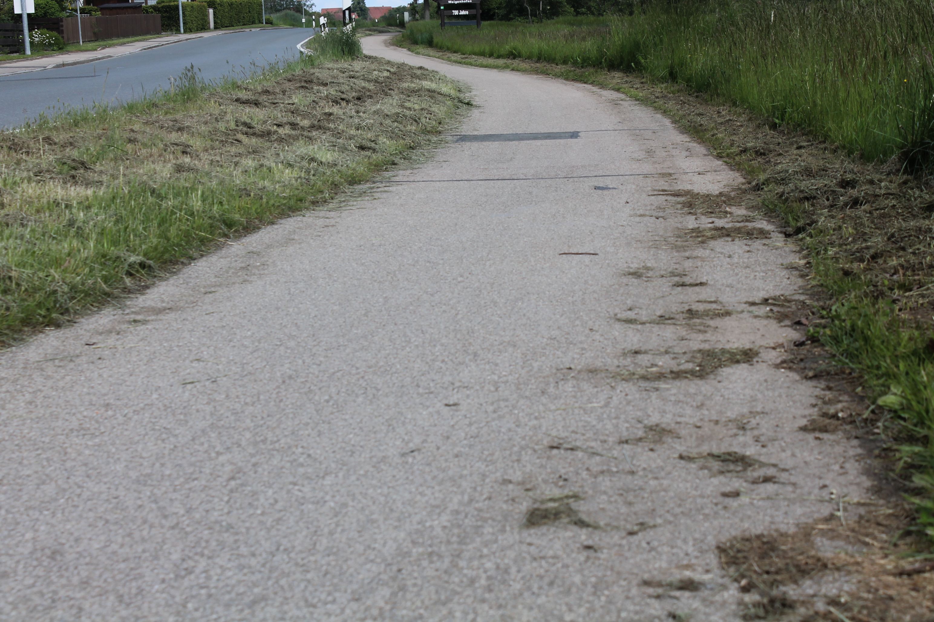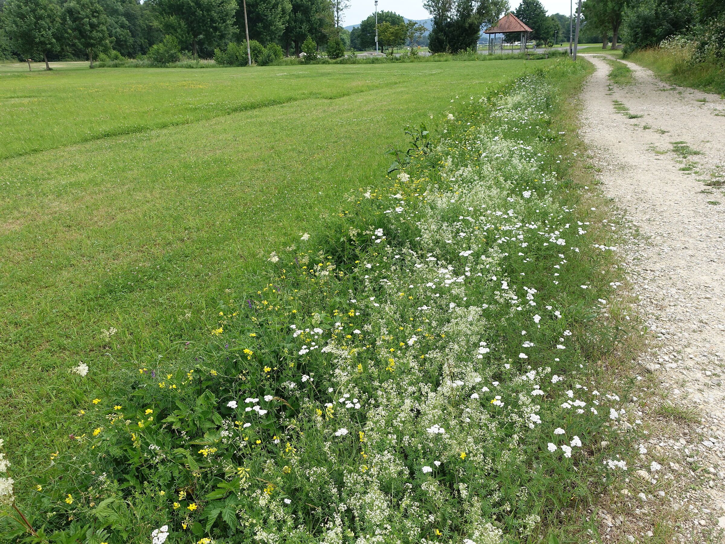 Entlang vieler Straßen und Wege werden die Böschungen zu häufig gemäht und das Mähgut oft auch liegen gelassen. Das hat zur Folge, dass kaum noch blühende Wegränder vorhanden sind. Viele Tiere brauchen jedoch gerade von Juni bis September ein Blütenangebot, da in dieser Zeit die Wiesen gemäht sind und kaum Nahrung vorhanden ist. Außerdem dienen die Wegränder als sicherer Wanderkorridor für Insekten, Igel, Amphibien und Vögel. Hier kann gerastet werden, es gibt Nahrung und das Tier ist vor Fressfeinden geschützt. Damit erfüllen die Wegränder eine wichtige Aufgabe bei der Verbindung von Lebensräumen.