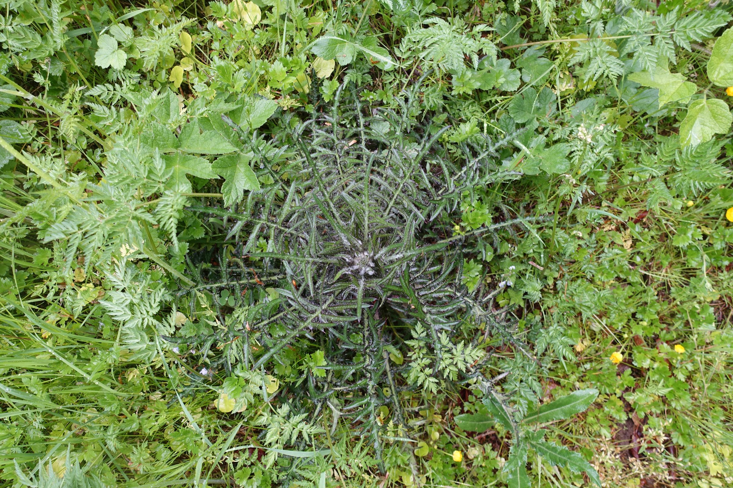 Am Sonntag begann es nach kurzer Zeit zu regnen. Unser Tarp hält dicht, aber noch ein paar Stangen wären nett. Die Outdoor-Ausrüstung könnte also noch verbessert werden. Gut versorgt mit Kaffee, selbstgebackenem Fingerfood und dicker Regenkleidung machten sich unverdrossen etwa 10 Personen auf die Suche. Die Listen waren bald gut gefüllt, allerdings mit vielen Pflanzen und weniger wirbellosen Tieren. Unter dem Tisch entdeckten wir zwei Blindschleichen und die Feuersalamander fanden den Regen nach der langen Trockenzeit prima. In den Regenpausen tauchten schnell die Insekten auf den Blattoberseiten wieder auf. Zur Begrüßung kam ein Schwarzstorch vorbeigeflogen.