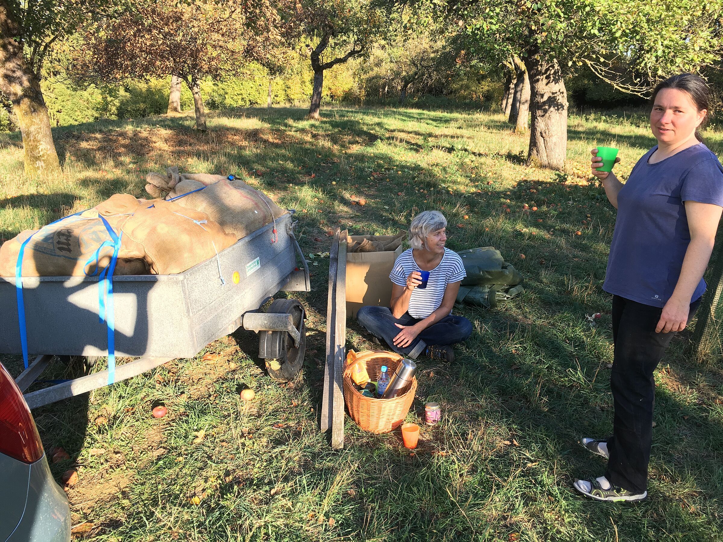 Die Ortsgruppe betreut seit Jahrzehnten eine Wiese bei Heuchling. Die Bäume werden geschnitten, neue Bäume wurden 2020-2021 gepflanzt. Seit einigen Jahren ist die Fläche Bio-Zertifiziert. Die Ernte im Herbst ist immer ein besonderes Erlebnis, die Äpfel gehen an die Initiative Pomme 200 des Landkreises. Die Einnahmen aus dieser Aktion gehen an den BN. Aber es sind immer genügend Äpfel da, dass auch alle Helfer sich eindecken können. Auf der Wiese sind manchmal Arbeiten zu erledigen, Astschnitt zerkleinern und am Rand als Hecke lagern, Holz aufarbeiten, im Sommer gießen der jungen Bäume, Verbissschutz kontrollieren und notfalls erneuern, Nisthilfen anbringen...
